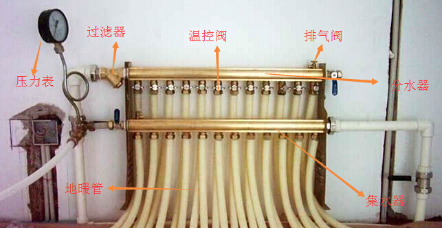 地暖分水器是水系統(tǒng)中,用于連接各路加熱管供、回水的配、集水裝置,按進回水分為分水器,集水器,所以稱為分集水器或集分水器, 俗稱分水器。